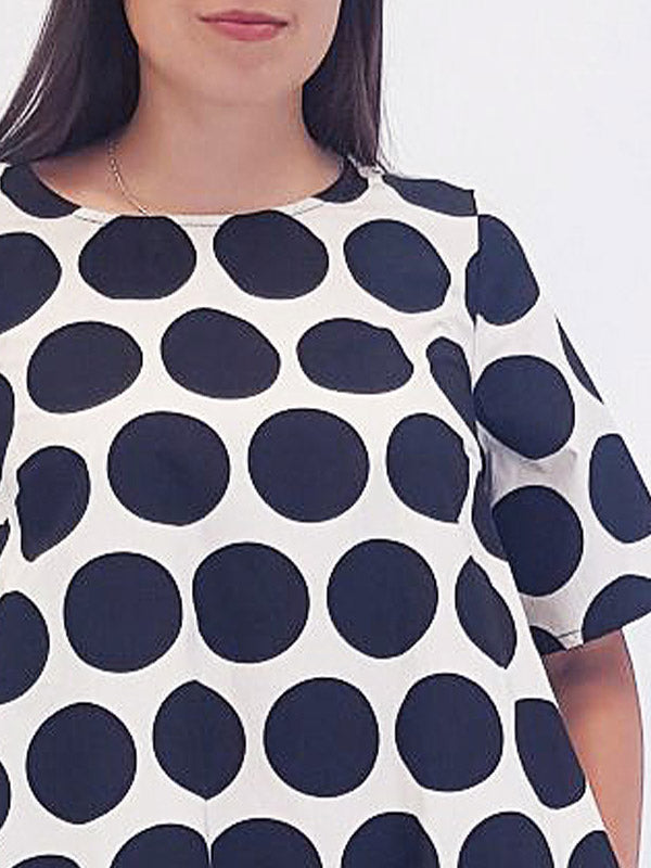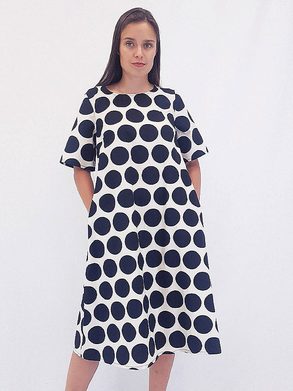 Il Vento E La Seta medvilninė A silueto suknelė "Dinno Ecru - Navy Big Dots"