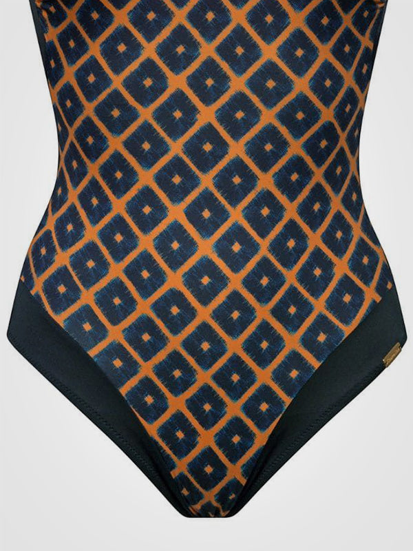 Charmline Shaping One-piece Swimsuit Tobacco Fields Brown - Black