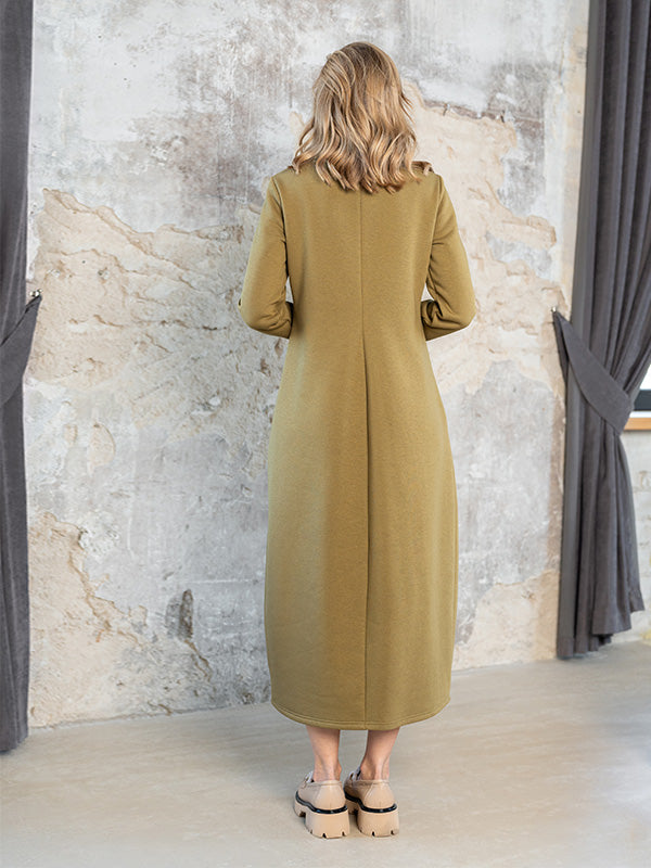 Lega Long Cotton Dress With Fluff Inside Trisha Khaki