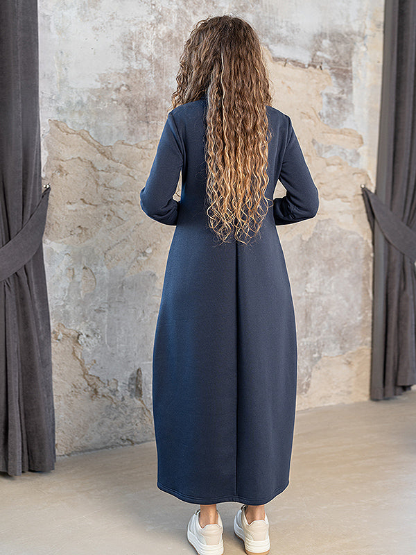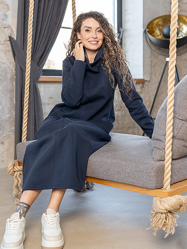 Lega Long Cotton Dress With Fluff Inside Trisha Navy