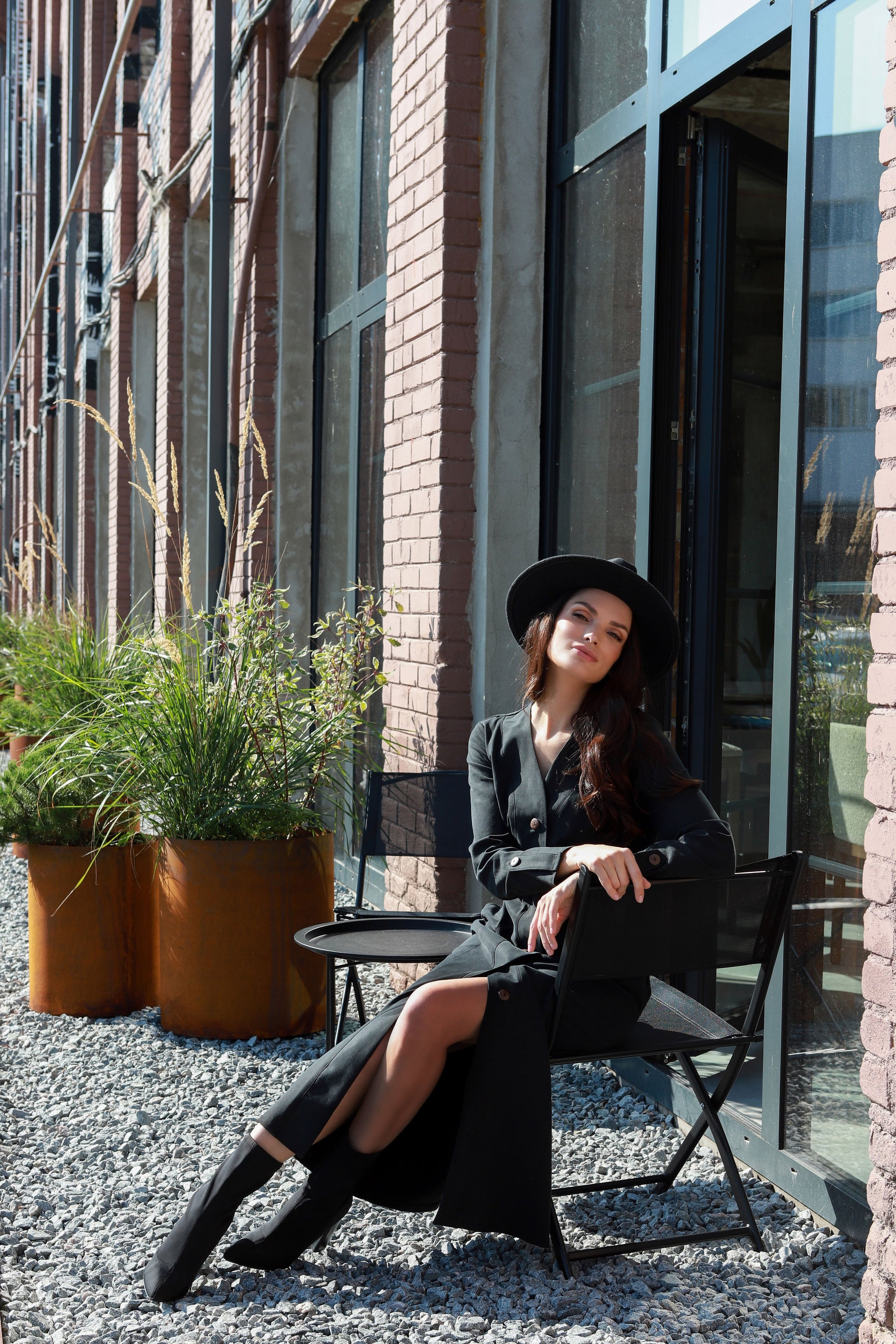 Lega Midi Dress with Buttons Ivana Graphite Black