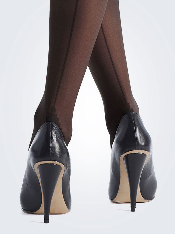 - pyramid-shaped heel and seam running from the back to the top band make your legs truly seductive;