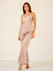 Komilfo šilkinė pižama su nėriniais "Gladiolus Mocca"