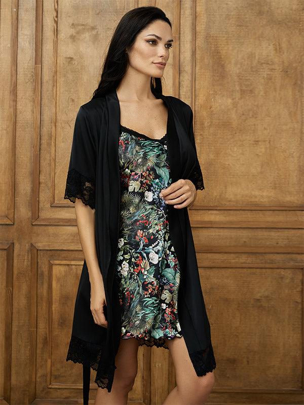 - Dailus chalatas, pasiūtas iš žvilgančio atlaso;
