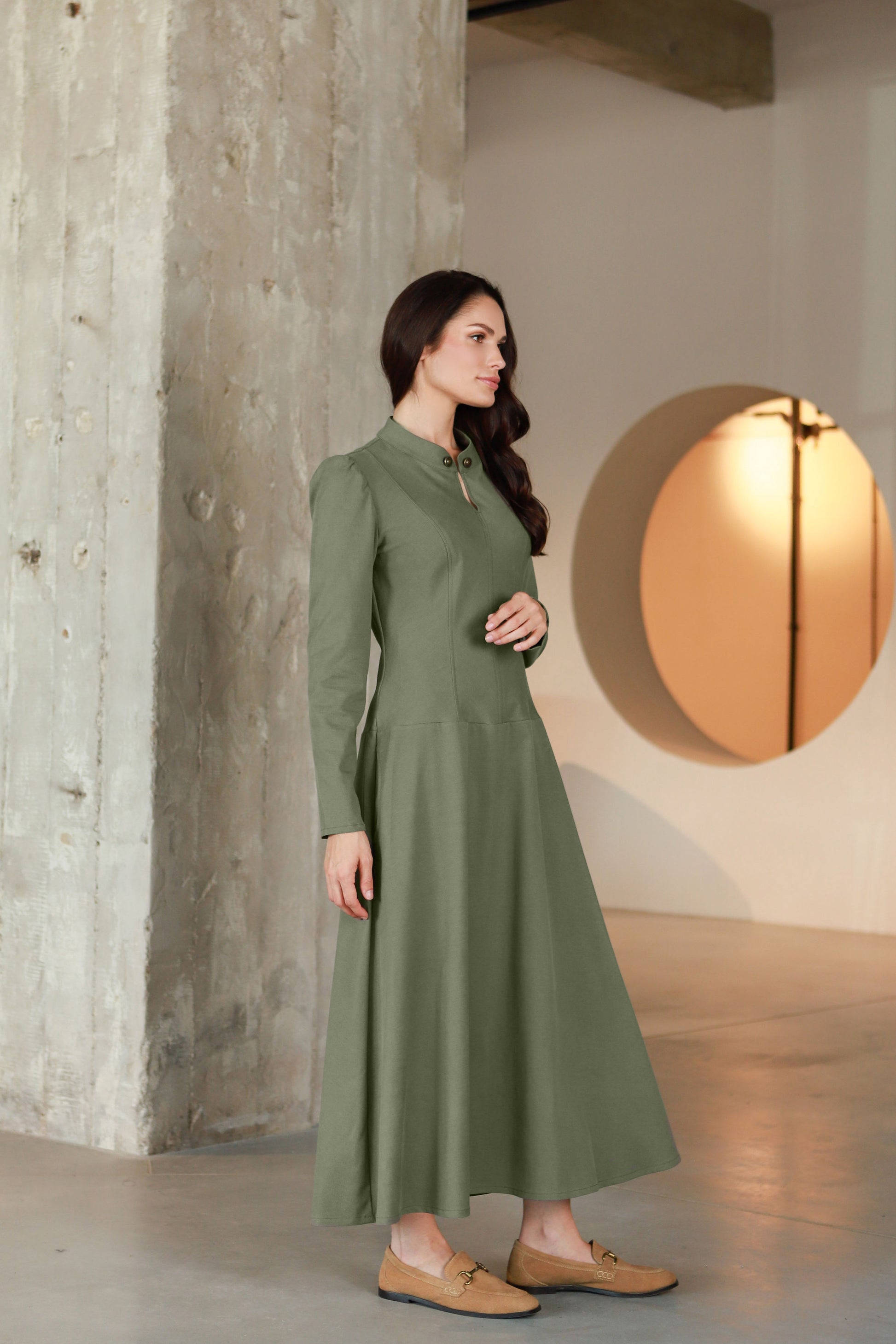 Lega ilga A silueto suknelė "Elara Olive Grey"