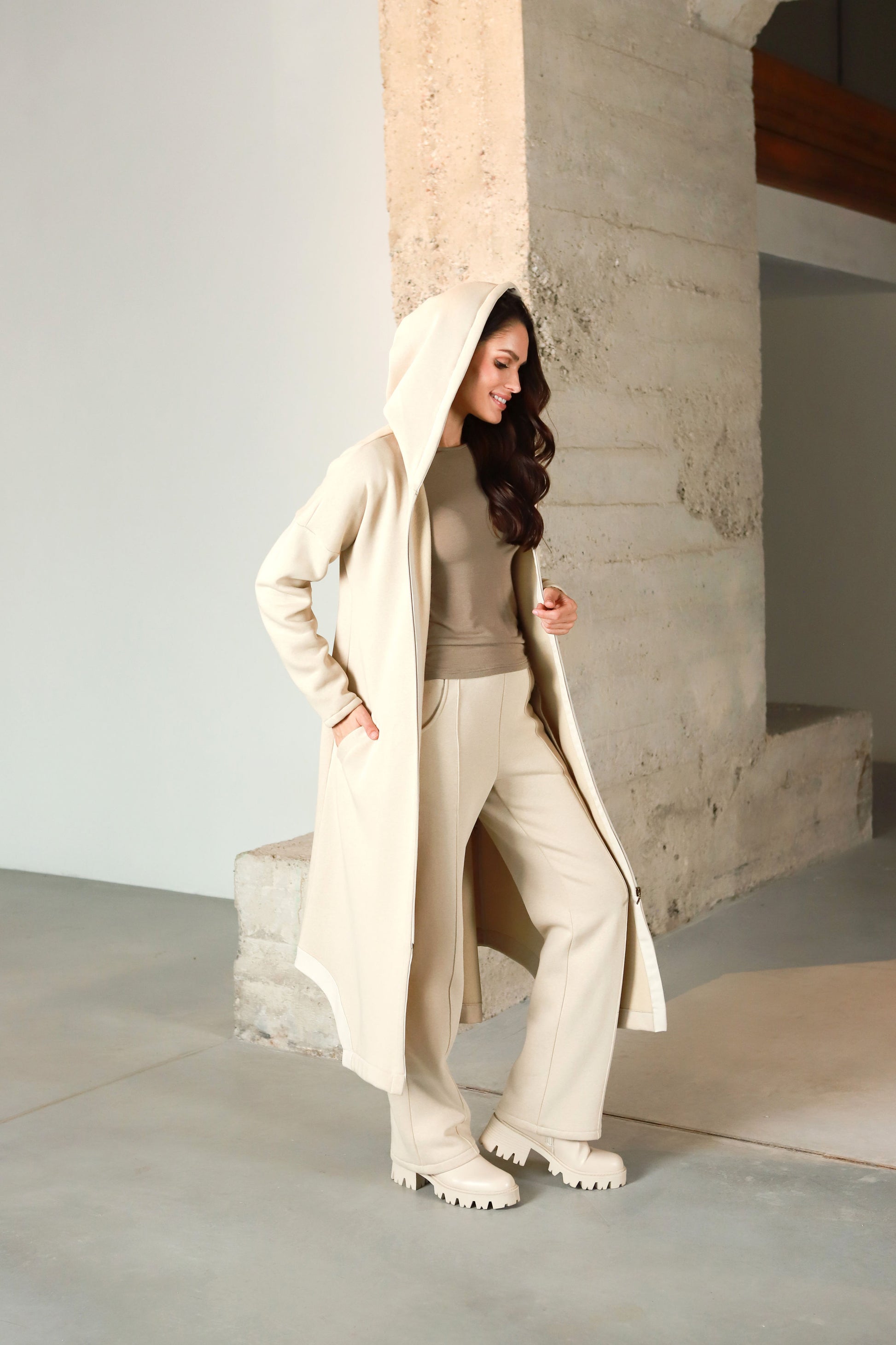 Lega ilgas kardiganas su pūkeliu iš vidaus "Aurelia Beige"
