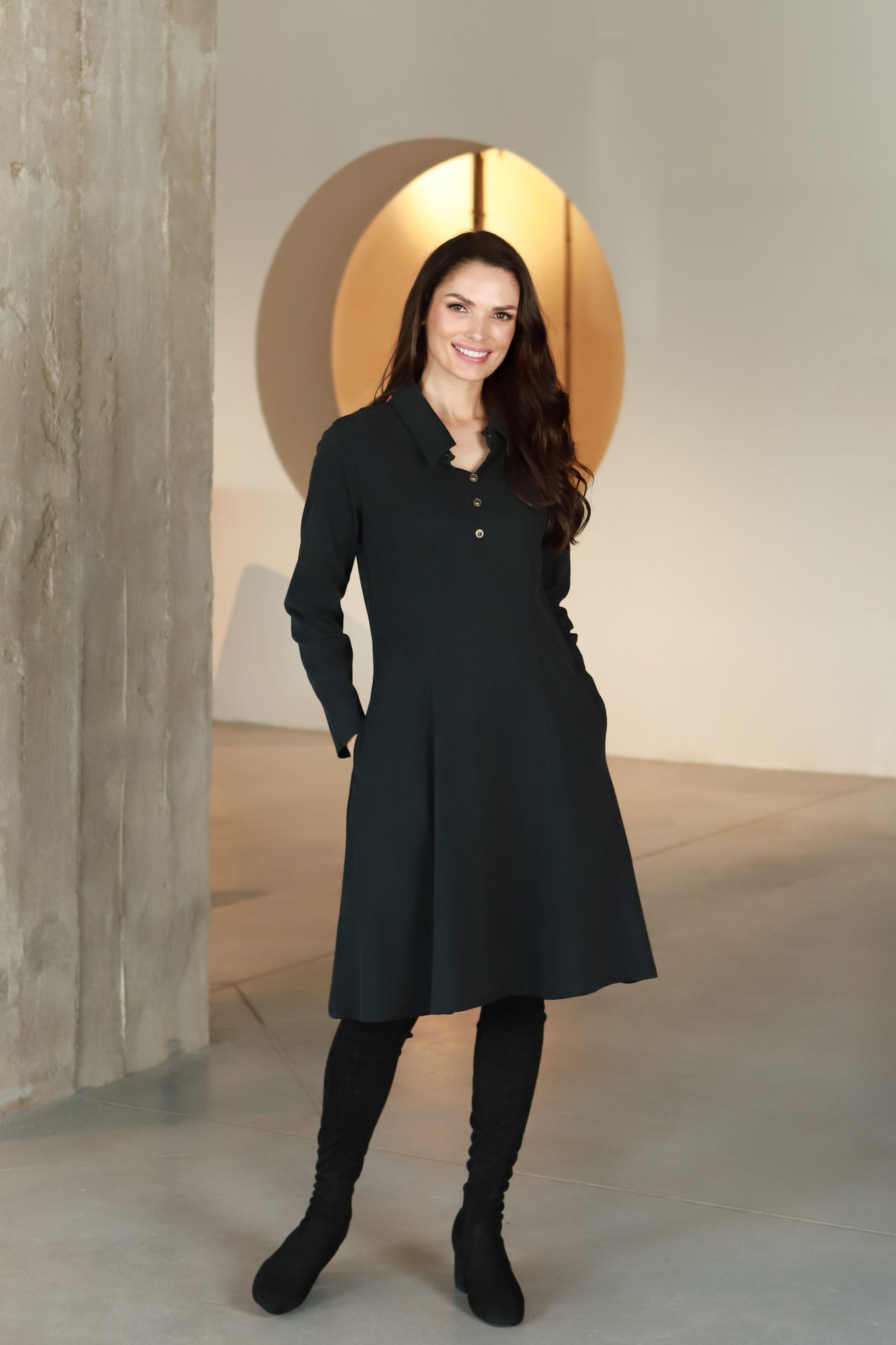 - Elegantiška suknelė, pasiūta iš kokybiško audinio;