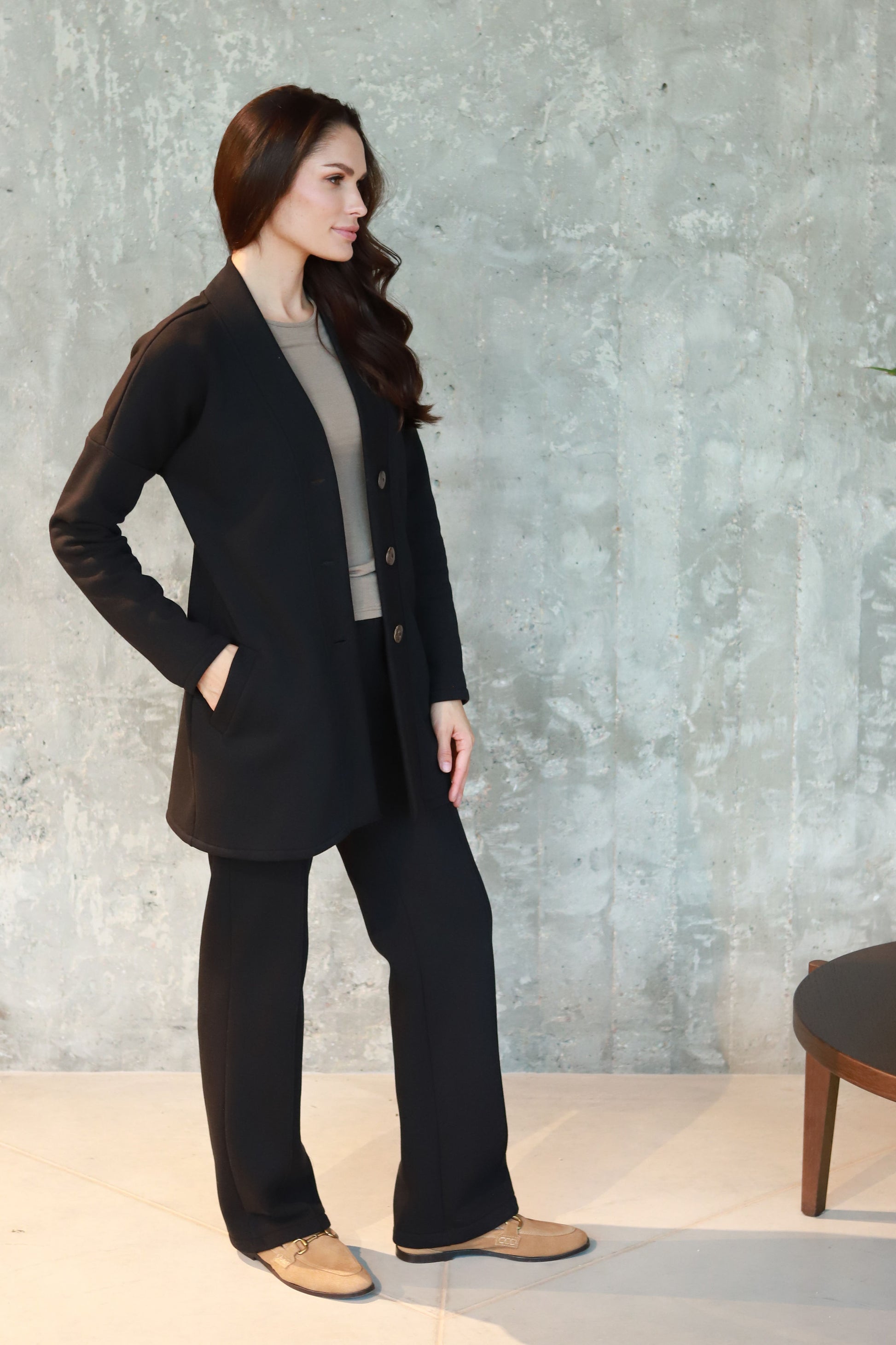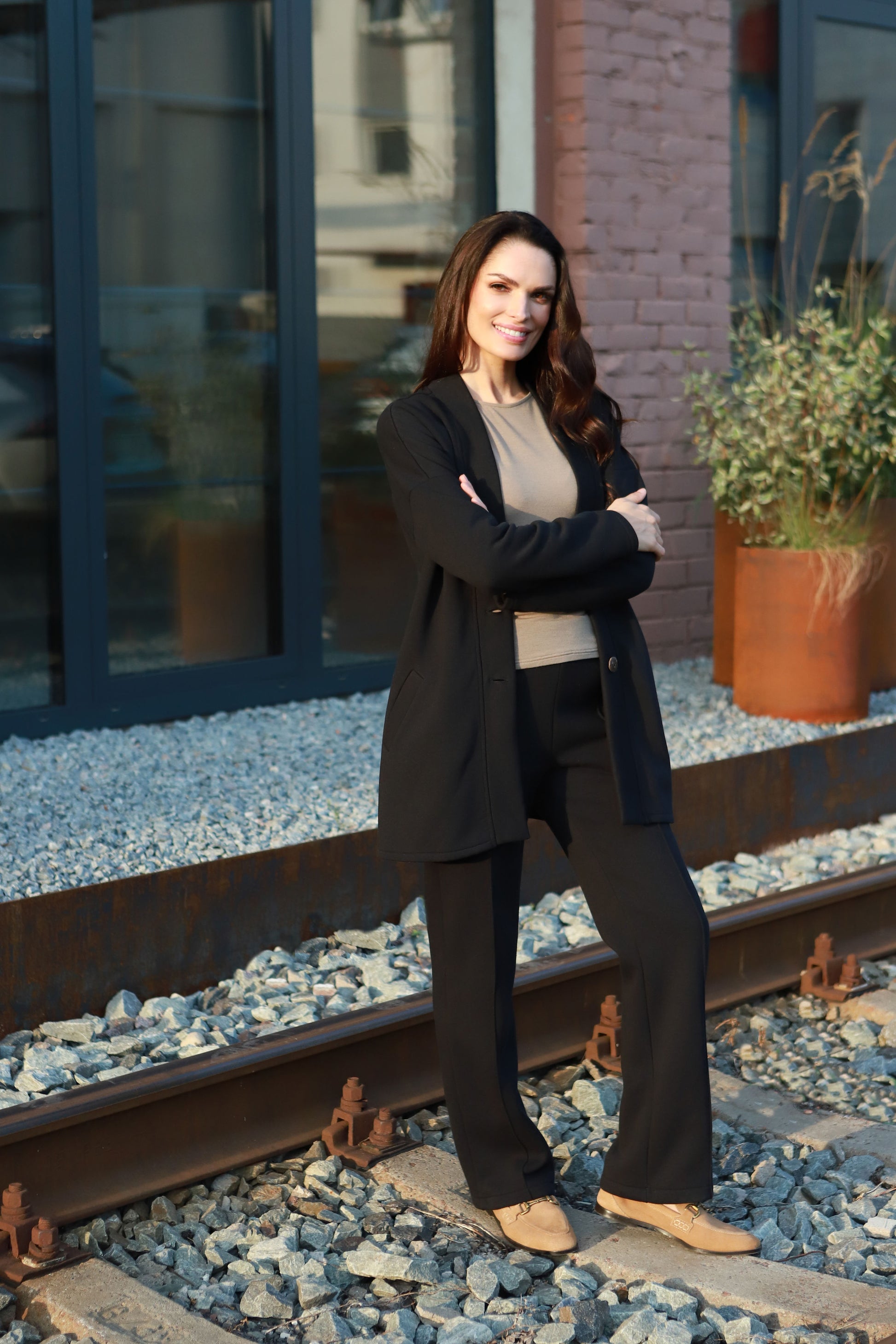 - Elegantiškas švarkelis, pasiūtas iš natūralaus pluošto audinio;