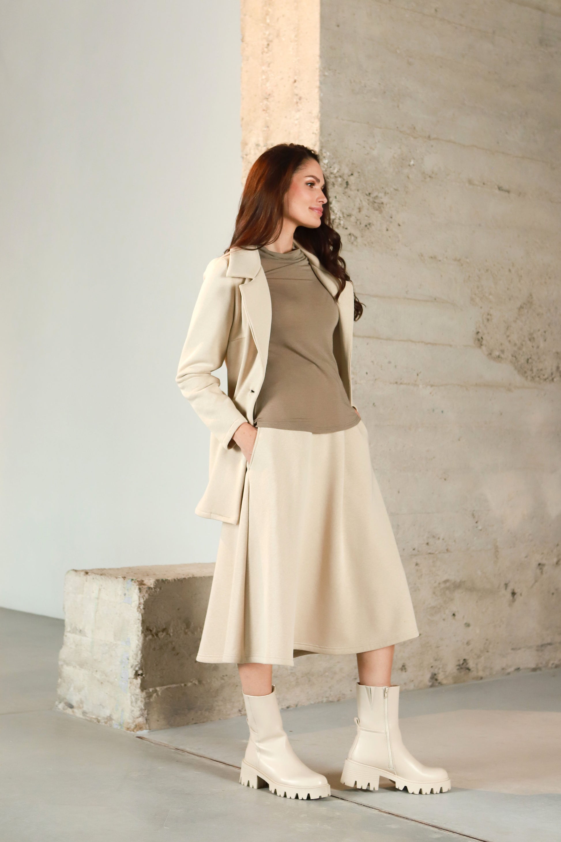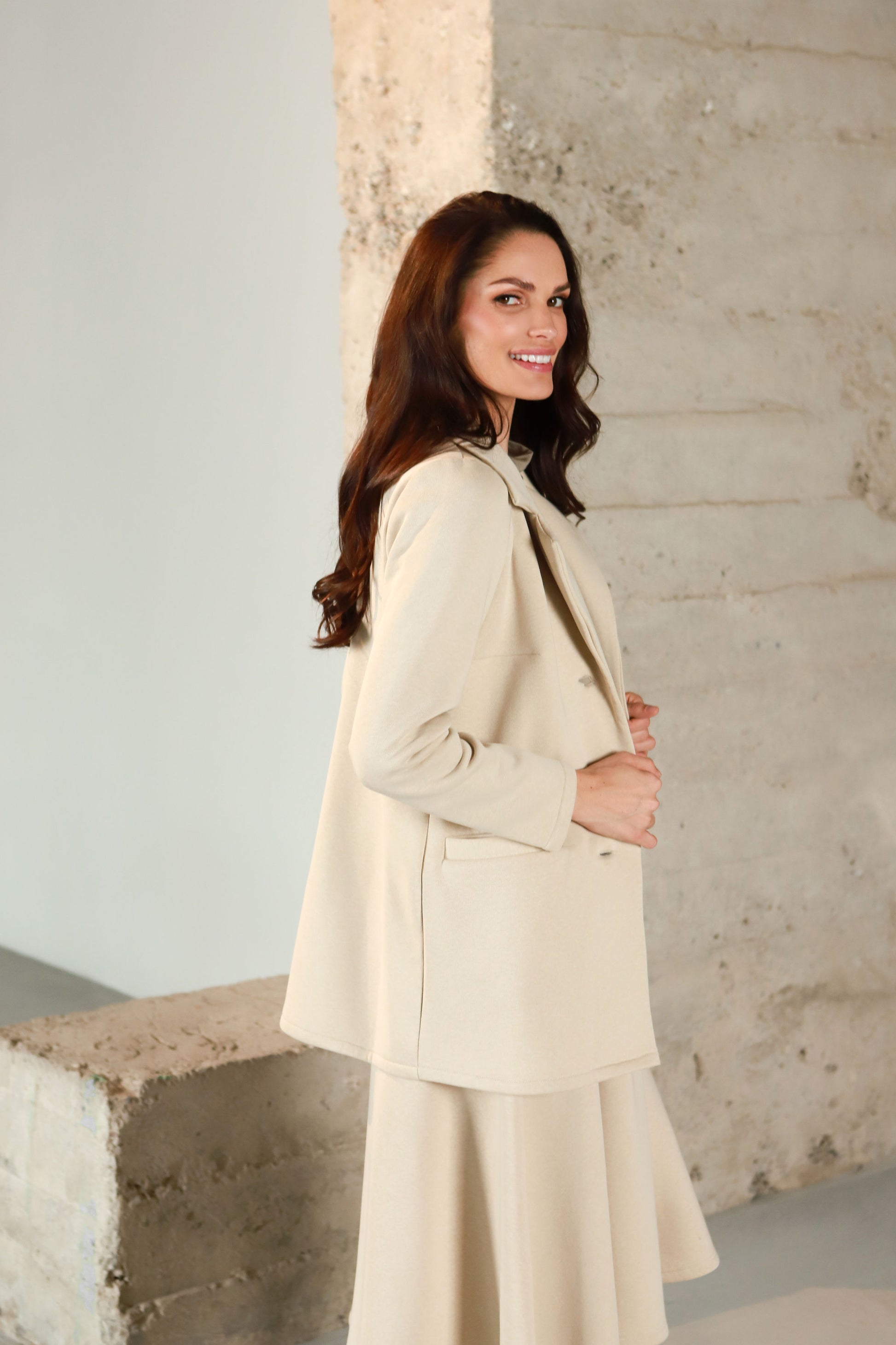 - Elegantiškas švarkelis, pasiūtas iš natūralaus pluošto audinio;