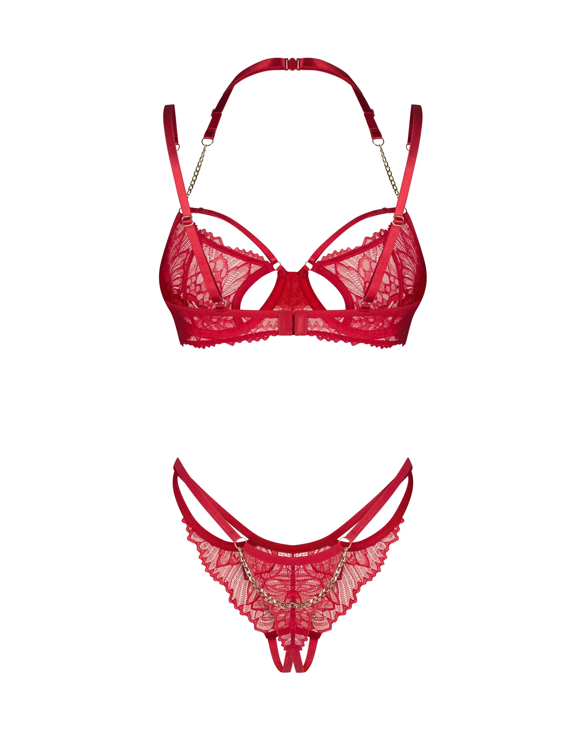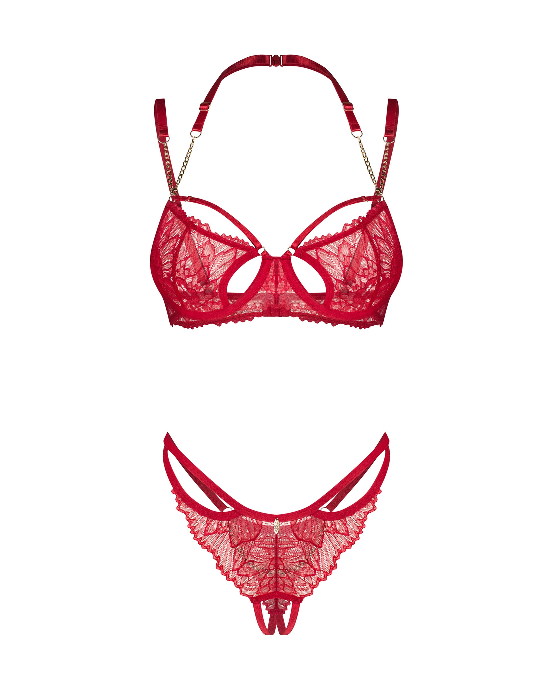 Obsessive atviras nėriniuotas apatinių komplektas "Matildea Red"
