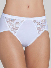 Sloggi aukšto juosmens medvilninės kelnaitės su nėriniais "Chic Midi White"