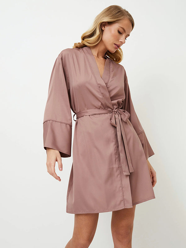 Aruelle атласный халат с шелком "Primrose Dusty Pink"