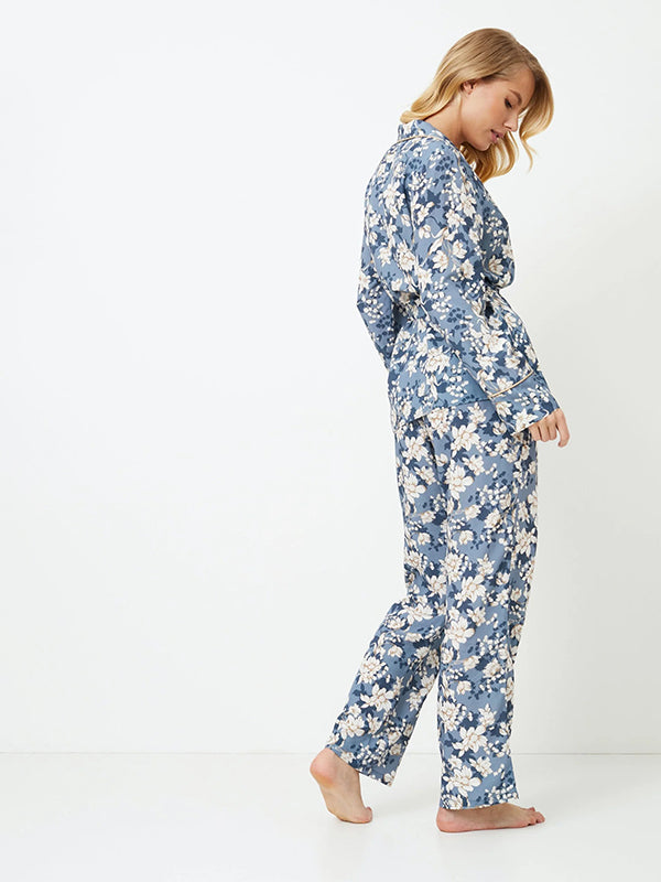 Aruelle длинная пижама из вискозы "Francine Long Blue - White Flower Print"