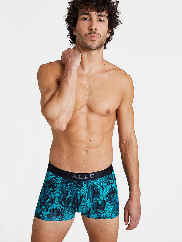 Aubade by Camille Lacourt боксеры из хлопка и модала "Timothy Turquoise - Black"