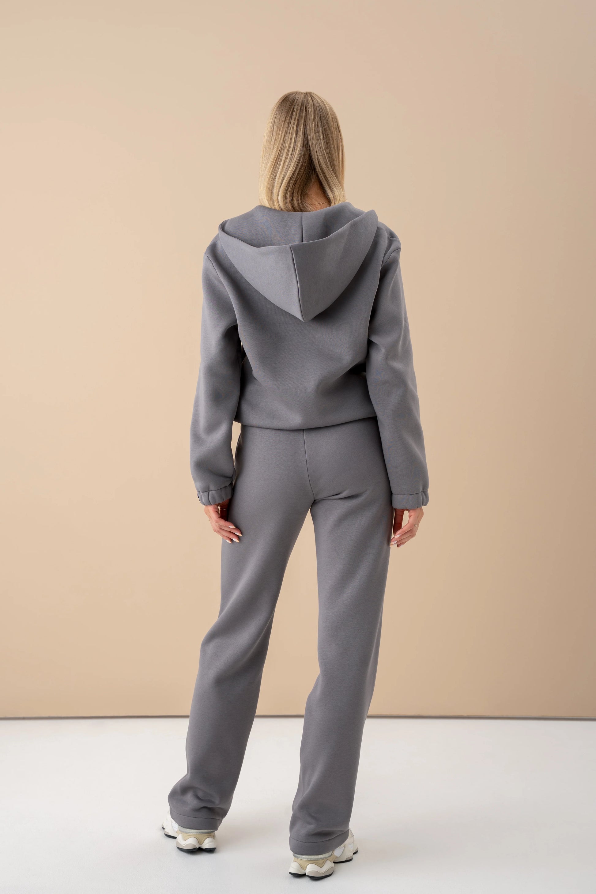 Если вы ищете образ, который одновременно был бы удобным и современным, этот серый костюм станет фаворитом гардероба. Это вещь, которая позволяет выглядеть стильно даже тогда, когда хочется максимального комфорта.
