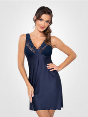 Donna атласная сорочка с кружевом "Mari Dark Blue"