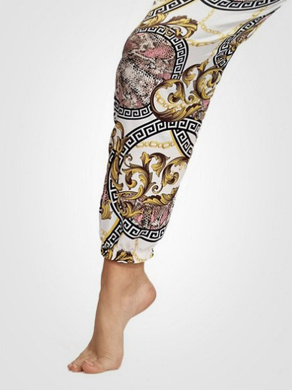 Donna длинная атласная пижама "Donatella White - Multicolor Ornament Print"