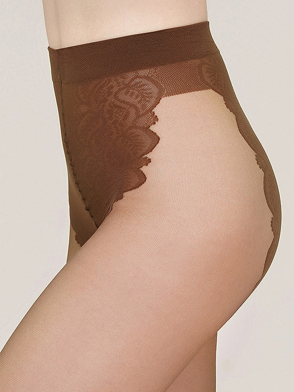 - Классические полуматовые колготки 20 ден с имитацией кружевных трусиков;