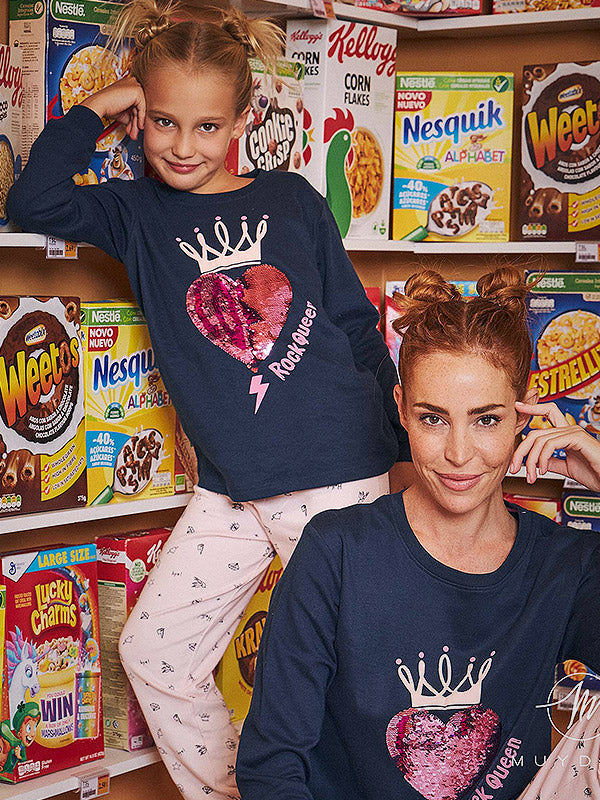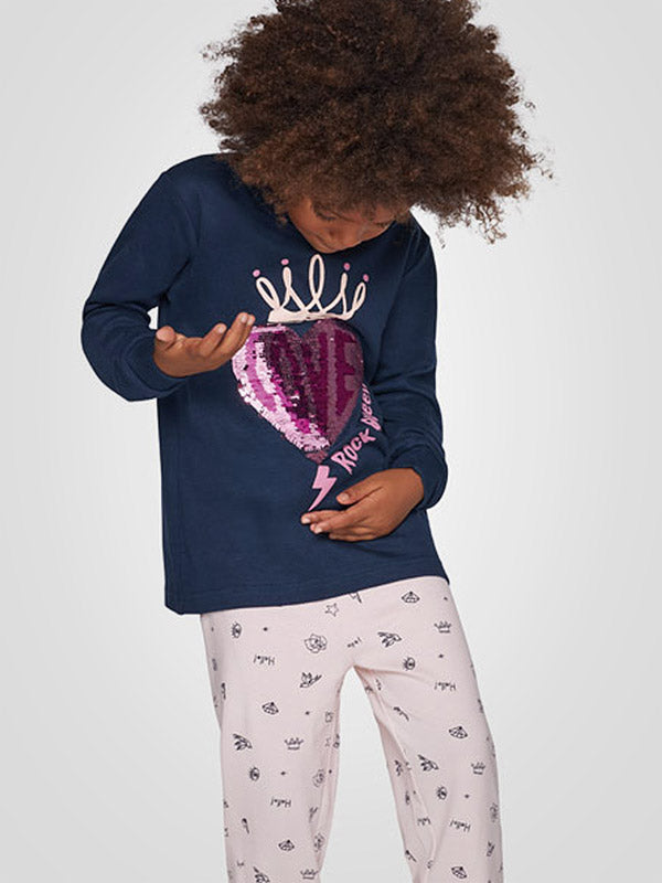 Muydemi длинная детская пижама "Rock Queen Navy - Pink"