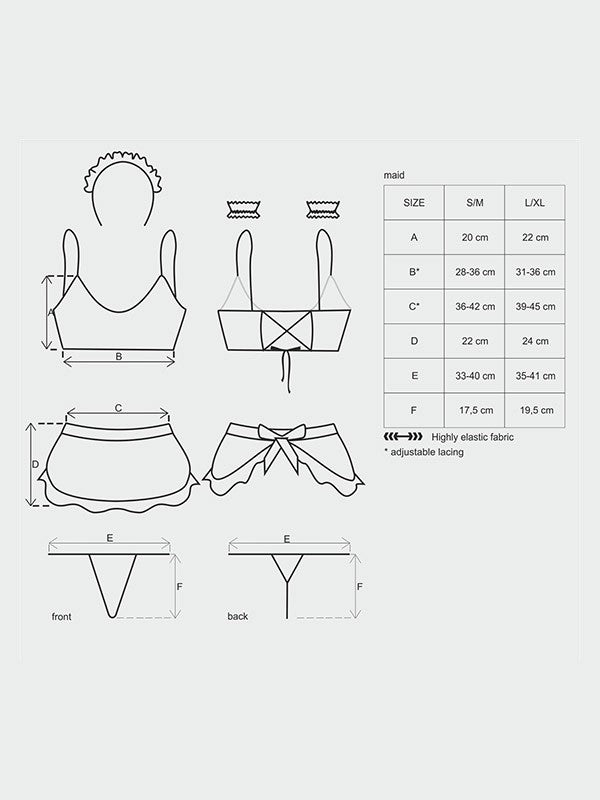 - Сексуальный костюм горничной, включающий: бюстгальтер, головной аксессуар, браслеты, фартук, трусики;