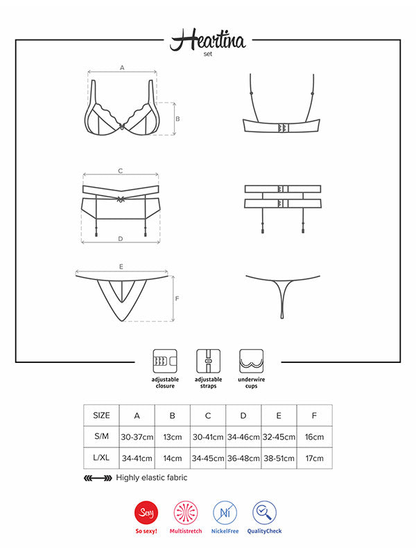 Obsessive кружевной комплект из 3 частей "Heartina Black"