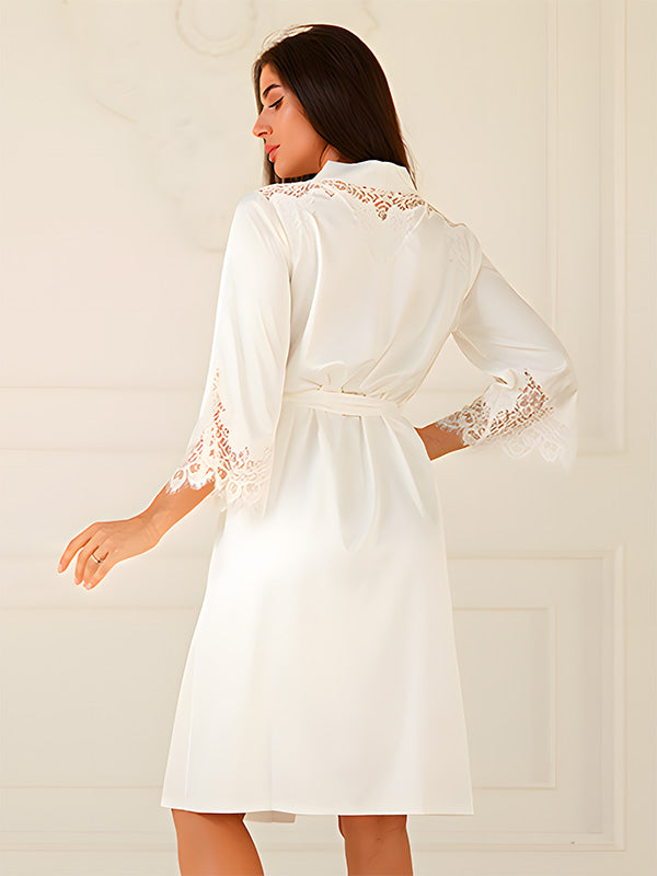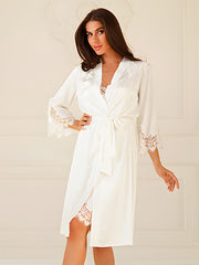 Komilfo šilkinis chalatas su nėriniais "Hibiscus Champagne"