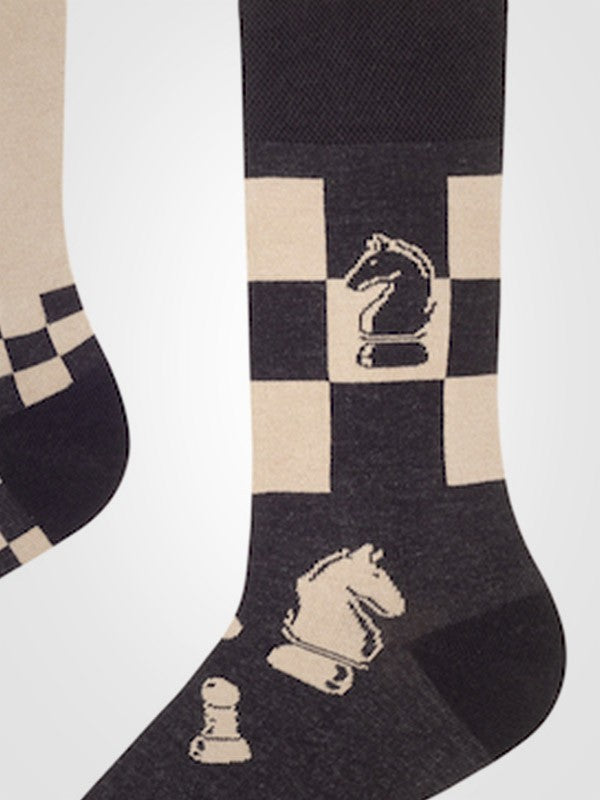 Spalvotos Kojines хлопковые унисекс носки "Checkmate Brown - Beige"