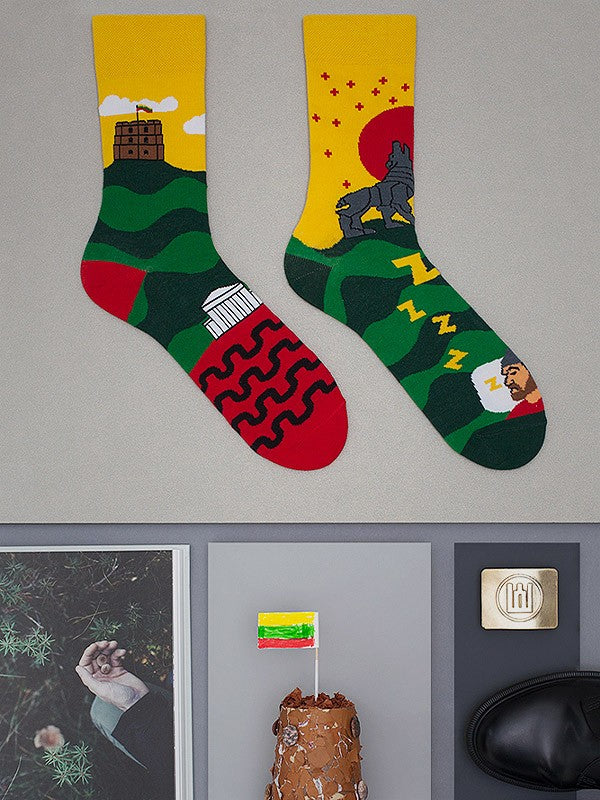 Spalvotos Kojines хлопковые унисекс носки "Iron Wofl Legend Yellow - Green - Red"
