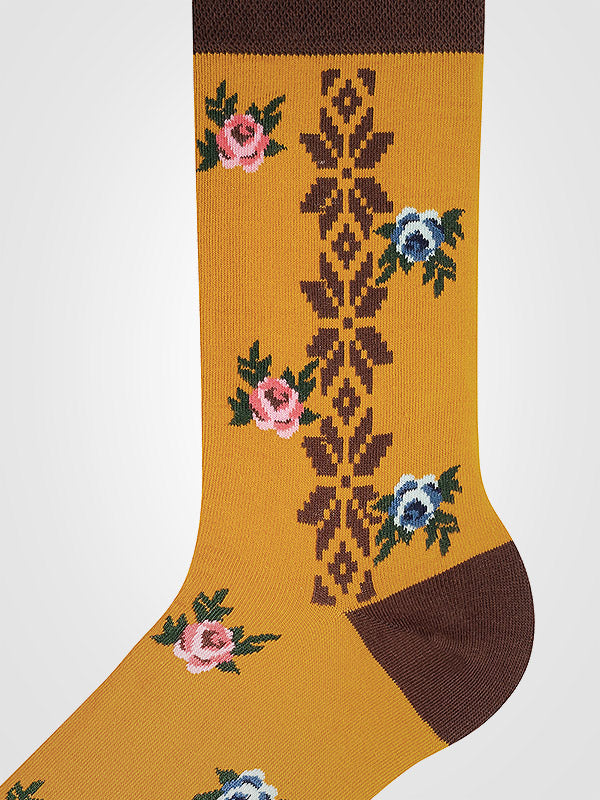 Spalvotos Kojines хлопковые унисекс носки "Žemaitė Yellow - Brown"