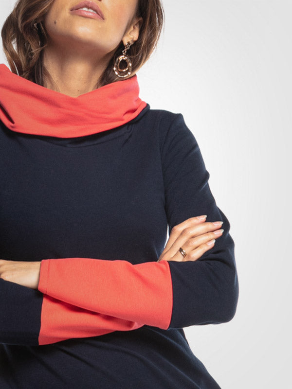 Tessita хлопковое платье с высоким воротом "Lucia Navy - Coral"